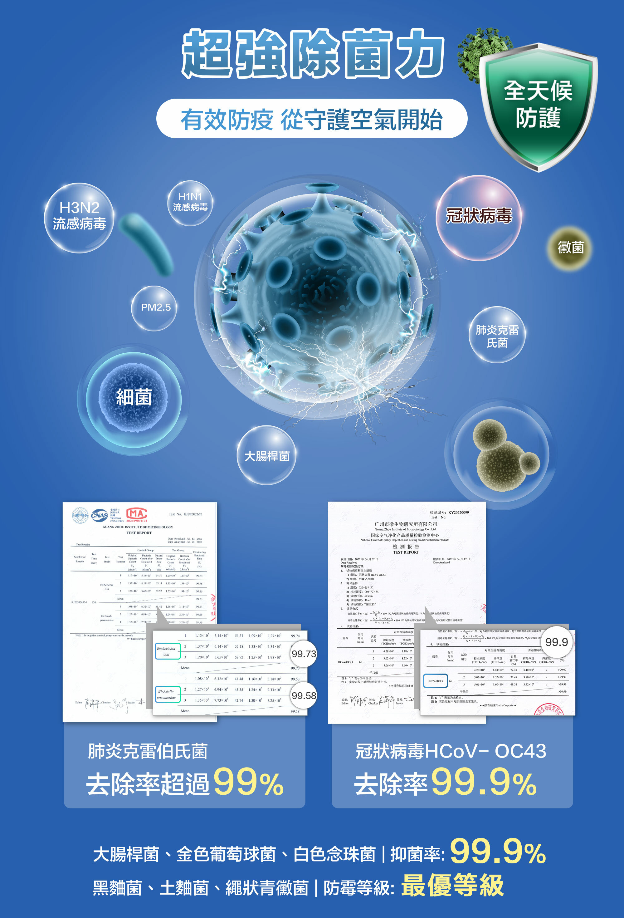 金黃葡萄球菌去除率99.9%