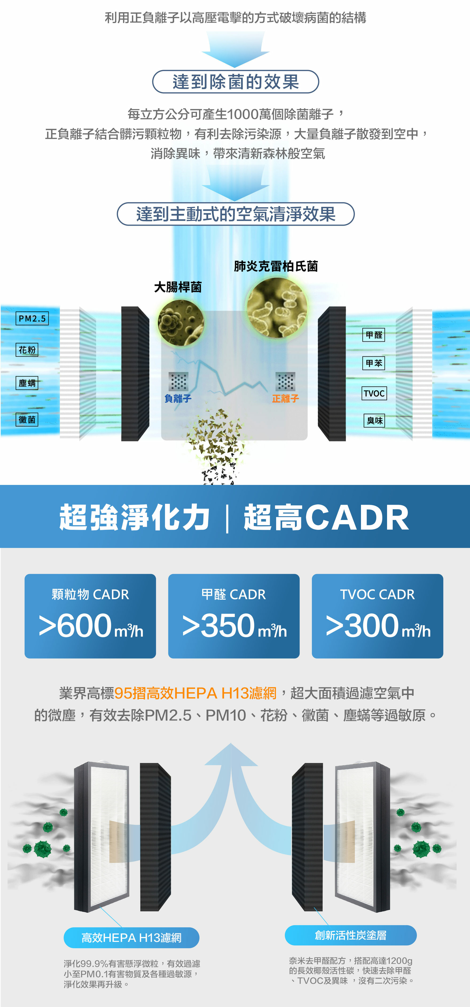 H13 高效 HEPA濾網 +大面積除醛除臭活性碳 去甲醛99%