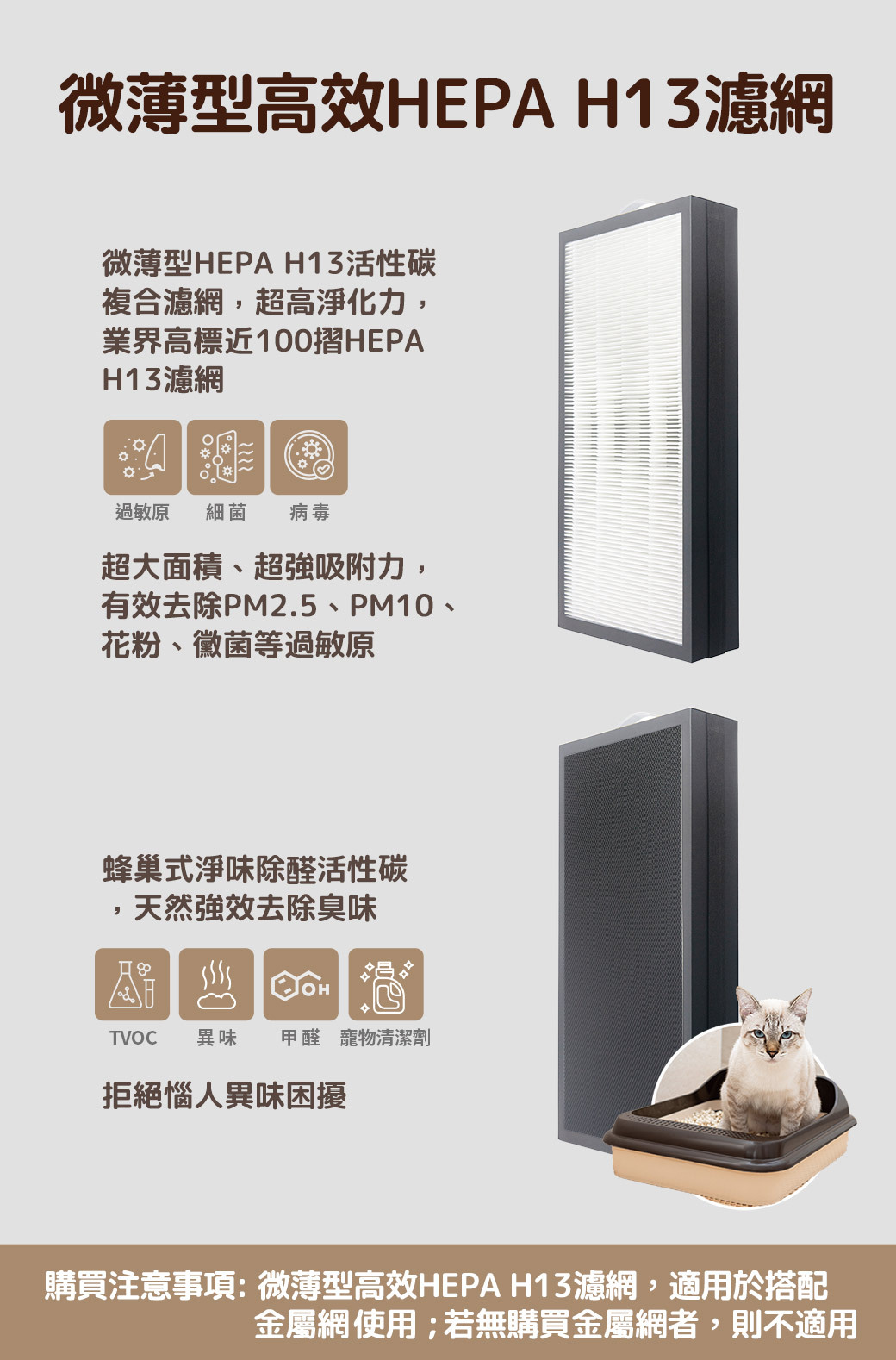 高效 HEPA H13濾網(不可水洗)